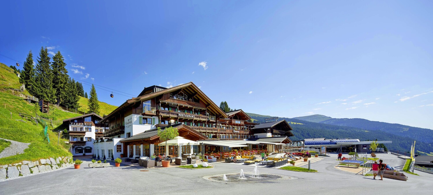 Bergrestaurant - Gipfeltreffen łączy austriacką tradycję z nowoczesną koncepcją gastronomiczną. Oferuje klasyczne dania regionalne, kreatywne opcje wegetariańskie i wegańskie oraz zapierające dech w piersiach widoki. Restauracja jest czynna podczas pracy kolejki linowej Königsleiten.