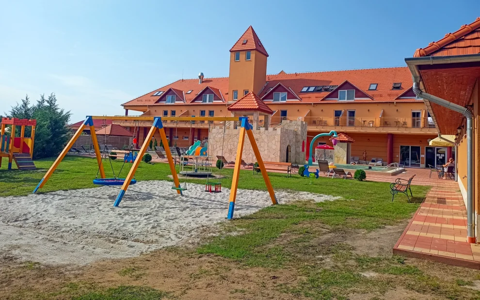 Moja córka jest bardziej nastolatką niż dzieckiem, ma 14 lat. Zauważyłem jednak, że hotel jest przyjazny rodzinom. W recepcji istnieje możliwość wypożyczenia łóżeczka dziecięcego, a w niektórych pokojach znajduje się aneks kuchenny, w którym o dowolnej porze dnia można podgrzać jedzenie dla dziecka lub przygotować większy posiłek. Na drugim piętrze hotelu znajduje się duży pokój gier. Dla zabawy małych gości przygotowano mnóstwo lalek i zabawek, kuchnię dla dzieci, duży telewizor, bilard, a także sofy i fotele dla dorosłych, którzy czuwają nad swoimi pociechami. Główną atrakcją dla dzieci jest oczywiście odkryty basen z dużym zamkiem, toboganem i zjeżdżalnią. Dla młodszych dzieci przygotowano mniejszą zjeżdżalnię. Kilka kroków od basenów znajduje się nowy plac zabaw z karuzelą, huśtawką, drabinkami i wspaniałym tunelem. Małym gościom na śniadaniach i kolacjach nigdy nie brakowało smakołyków.
