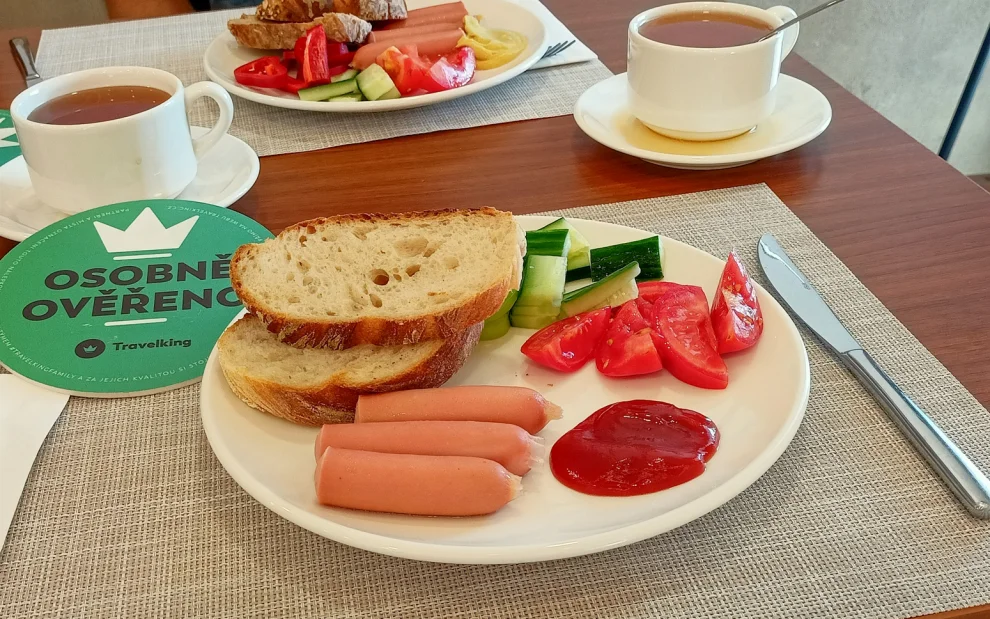 Na śniadanie można było iść już od 7:00, ale my poszliśmy na nie dopiero około 8:30. Jednak nawet o tej porze jedzenia było pod dostatkiem. Na stołach bufetowych gościły różne rodzaje wypieków (białe i pełnoziarniste, ciemne bułki, pieczywo), jajecznica, kiełbaski, szeroki wybór warzyw, wędlin i serów oraz co najmniej dwa rodzaje rozprzestrzenia się. Spośród dań słodkich nie zabrakło jogurtów, różnego rodzaju dżemów i musli. Nie zabrakło też owsianki z kaszą manną z kakao i naleśnikami nie tylko dla najmłodszych. Aby ugasić pragnienie, dostępna była czysta woda, soki (pomarańczowy, jabłkowy), różne rodzaje herbat, kilka rodzajów kaw (espresso z mlekiem i bez, cappuccino) oraz kakao.
