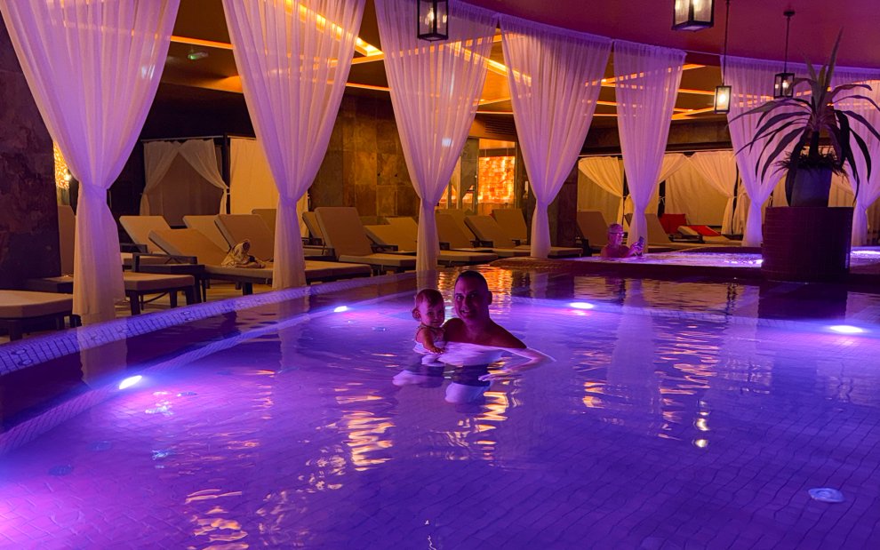 Z prawdziwą przyjemnością relaksowaliśmy się w dużych krytych basenach termalnych z elementami hydromasażu, które rozluźnią każdy mięsień. Po pływaniu delektowaliśmy się chwilami odpoczynku na wygodnych leżakach i łóżkach z baldachimem. Byliśmy również pod ogromnym wrażeniem świata saun, który oferuje panoramiczną saunę fińską w stylu drewnianej chaty, saunę na podczerwień, kabinę parową i saunę aromatyczną. Himalajska grota solna ma wyjątkowy urok, gdzie mogliśmy naprawdę cieszyć się chwilami spokoju i kontemplacji.