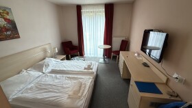 Po przyjeździe personel nie był zbyt miły, wręcz nieprzyjemny. Od razu usłyszeliśmy, że nie mają tam recepcjonistki, ponieważ ją odwołali i że jest tam sama. Na pytanie, kiedy można odwiedzić centrum odnowy biologicznej, powiedziano mi, że po południu następnego dnia. Pytam więc, od której do której jest popołudnie, np. od 12:00 do 18:00? Odpowiedź: "Wcale nie, od trzeciej do zamknięcia". Śniadanie było świetne. Obiad był do wyboru z dwóch dań i zupy, posiłki były po prostu ciężkie i niezdrowe.