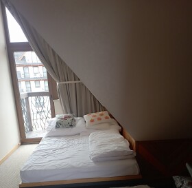 Jako seniorzy dostaliśmy pokój na 3 piętrze, na które prowadziło 50 schodów i nie było możliwości zamiany, mimo że hotel był pusty. Pokój był małym poddaszem łącznie z łazienką, wszędzie trzeba było uważać na głowę