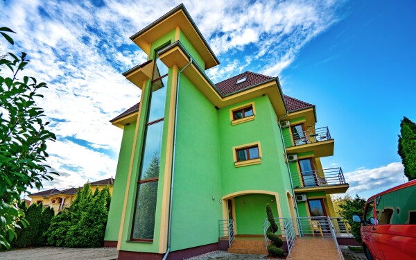 Pensjonat znajduje się w odległości krótkiego spaceru od term, co jest zaletą. Wadą jest to, że wracając wieczorem po zmroku ze spa, ścieżki nie są oświetlone i trzeba chwilę błądzić lub korzystać z przenośnej latarki, za co właściciele nie odpowiadają. W niedzielę przed poniedziałkowym wyjazdem zadzwoniła do mnie pani z pytaniem, czy nie chcielibyśmy przełożyć wyjazdu, bo mają dzień sanitarny na basenie. Późny wyjazd nie był możliwy, mieliśmy urlop tylko w ustalone wcześniej dni. Przy wyjeździe właściciel poinformował nas, że basen jest zepsuty, więc z niego nie korzystaliśmy. Zakwaterowanie - na pierwszy rzut oka piękna okolica, nowoczesne pokoje z balkonem i łazienką, ale potem odkrycie dawno zużytych materacy, podartej pościeli, przez cały pobyt obecność bzyczących robali i biedronek na twarzy. Jedzenie bardzo skromne. Spędziliśmy prawie cały dzień w spa, więc wystarczyło na nocleg, ale następnym razem raczej nie.