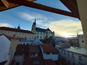 Byliśmy zadowoleni i mile zaskoczeni spokojnym otoczeniem pensjonatu, w którym panowała rodzinna atmosfera. Jego lokalizacja jest w bardzo strategicznym miejscu, na Placu Smetany, w pobliżu atrakcji turystycznych - zamku, kościoła Znalezienia Krzyża Świętego, ogrodów klasztornych, muzeum regionalnego. Wewnątrz pensjonatu mijaliśmy przyjaznych i uśmiechniętych właścicieli, którzy starali się wszystko naprawić. Dostaliśmy pokój z tarasem z widokiem na Katedrę Pijarów, pokój był przestronny, przytulny i wyposażony w klimatyzację, nowoczesny telewizor, lodówkę z minibarem, ekspres do kawy, zawierał ciekawie zaprojektowaną nowoczesną łazienkę, szerokie i wygodne łóżka zapewniające komfortowy nocleg. Byłam absolutnie zachwycona anatomiczną poduszką, ponieważ mam problemy z kręgosłupem szyjnym i dzięki niej czułam się jak w domu. Nowością dla nas był kosz śniadaniowy, który był serwowany bezpośrednio do pokoju, a jego smaczna i obfita zawartość oraz ilość przekraczała nasze możliwości zjedzenia wszystkiego. Podczas naszego pobytu skorzystaliśmy również z prywatnej wanny z hydromasażem, w której pięknie się zrelaksowaliśmy i rozgrzaliśmy, ponieważ tego dnia było dość chłodno. W każdym razie to miejsce zasługuje dla mnie na 100% pozytywną ocenę i jeśli ponownie będziemy mieli wycieczkę do Litomyśla, wiemy, gdzie zarezerwować nocleg.
