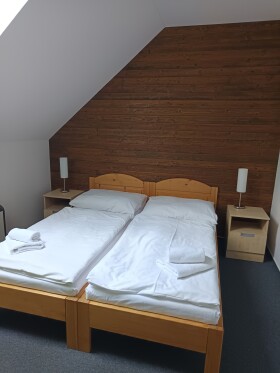 Pokój trzyosobowy wyposażony jest w 3 łóżka podwójne, szafki nocne i część wypoczynkową ze stołem. Do dyspozycji Gości jest prywatna łazienka z prysznicem i toaletą.