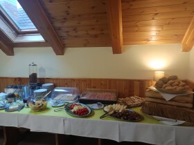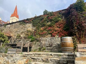 Zaczynając od pozytywów, ogólną ocenę pobytu podniosła czystość pensjonatu i smaczne, dość obfite śniadanie. Znacznie mniej zadowoleni byliśmy jednak z postawy personelu, w tym właściciela, który na maila o możliwości zorganizowania degustacji z wyprzedzeniem odpowiedział, że wszystko zostanie załatwione po naszym przyjeździe. Nikt nie zapytał nas, kiedy przyjedziemy, ale zameldowanie było od drugiej, więc przyjechaliśmy o wpół do trzeciej, chcąc się zameldować, wziąć prysznic i zrobić wycieczkę do centrum. W pensjonacie nie było nikogo, a kiedy zadzwoniliśmy, najpierw właściciel odpowiedział, że będzie tam za minutę, a potem zadzwonił ponownie, że kucharz będzie tam za kwadrans, aby nas zameldować. W sumie straciliśmy w ten sposób około pół godziny i powiedziałem mu, że jedziemy prosto do miasta, co nie było idealnym rozwiązaniem po około pięciu godzinach w drodze. Później właściciel zadzwonił, aby powiedzieć, że kiedy przyjedziemy, panowie siedzący przed pensjonatem udzielą nam wieczorem instrukcji. Jednak cała "odprawa" polegała na wręczeniu nam korby, ani słowa o wifi, śniadaniu czy degustacji. Po tym doświadczeniu nie byliśmy już zainteresowani degustacją w pensjonacie, więc odwiedziliśmy okoliczne piwnice i tam zrealizowaliśmy nasz program. Jednak z pewnością nie poprawiło to ogólnego wrażenia z pobytu. I nie odpuszczę sobie jeszcze dwóch uwag. Nie żebyśmy byli go pozbawieni, ale skoro w ofercie było napisane, że jako goście mamy dostać butelkę wina w cenie noclegu, to właściciel powinien był zadbać we własnym interesie o siedmiopokładowy zapas wina przynajmniej średnio zdatnego do picia. Ale umieszczenie tam dwóch mini butelek niezdatnego do picia Veltlinera jest moim zdaniem nie tylko brakiem szacunku dla gości, ale także hańbą dla właściciela-winiarza. Nie wybraliśmy naszego zakwaterowania dla luksusu i spędziliśmy tam minimalny czas poza spaniem, ale można by oczekiwać pewnego standardu nawet od tej kategorii zakwaterowania. Fakt, że pokój był malutki można przeżyć, a żądanie klimatyzacji w nim byłoby prawdopodobnie zbyt wygórowane. Ale nieznośnego gorąca panującego w pokoju pod dachem nie dało się złagodzić nawet przy otwartych oknach, dlatego uważam, że przynajmniej odpowiednim środkiem zaradczym było zamontowanie w oknach moskitier, abyśmy nie budzili się po nieprzespanej nocy wciąż użądleni.