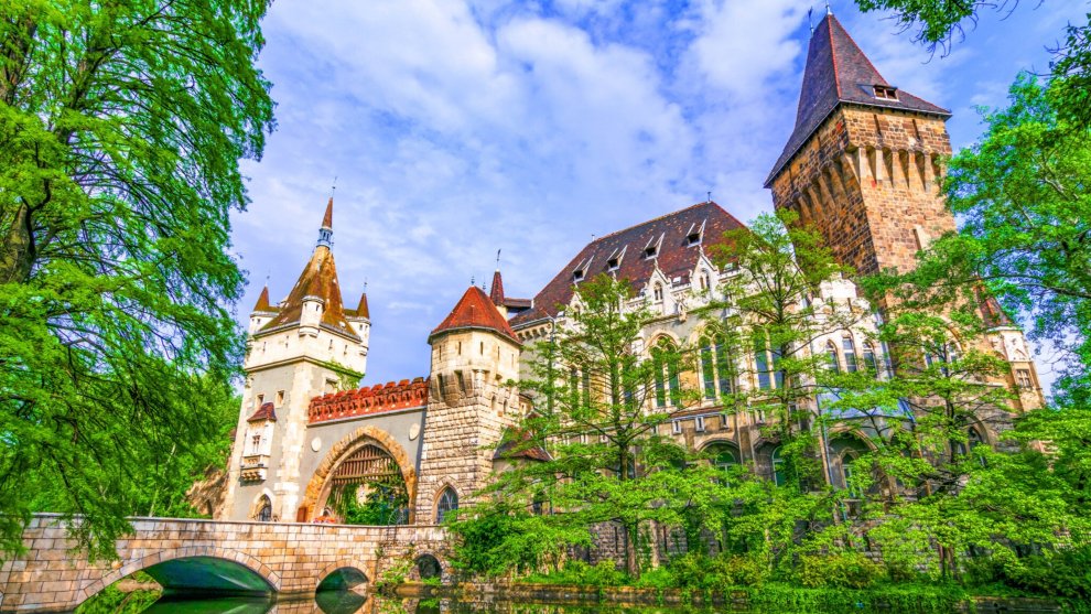 Większość zamków na świecie powstała jako twierdza obronna w trudnych czasach lub jako luksusowa rezydencja dawnych monarchów. Zamek Vajdahunyad powstał w zupełnie innych i znacznie szczęśliwszych okolicznościach. Jej ukończenie datuje się na bardzo znaczący dla narodu węgierskiego rok 1896 – w tym roku odbyły się wielkie obchody tysiąclecia państwa węgierskiego. Z okazji tej uroczystości w budapeszteńskim parku Városliget zbudowano drewnianą imitację historycznego budynku zamku z siedmiogrodzkiego miasta Hunedoara. Choć sceneria zamku miała stanąć w parku tylko chwilowo, miejscowym mieszkańcom zamek tak się spodobał, że z czasem miasto zbudowało zamek z trwałych materiałów. Dziś można tu zobaczyć połączenie kilku stylów architektonicznych – romańskiego, gotyckiego i renesansowo-barokowego. Najbardziej charakterystycznym elementem zamku jest średniowieczna wieża zamku Vajdahunyad, od której zespół wziął swoją nazwę. Wewnątrz zamku można zwiedzić Muzeum Rolnictwa. Budynek otoczony jest Jeziorem Városligeti, które latem jest popularnym miejscem do pływania łódką.