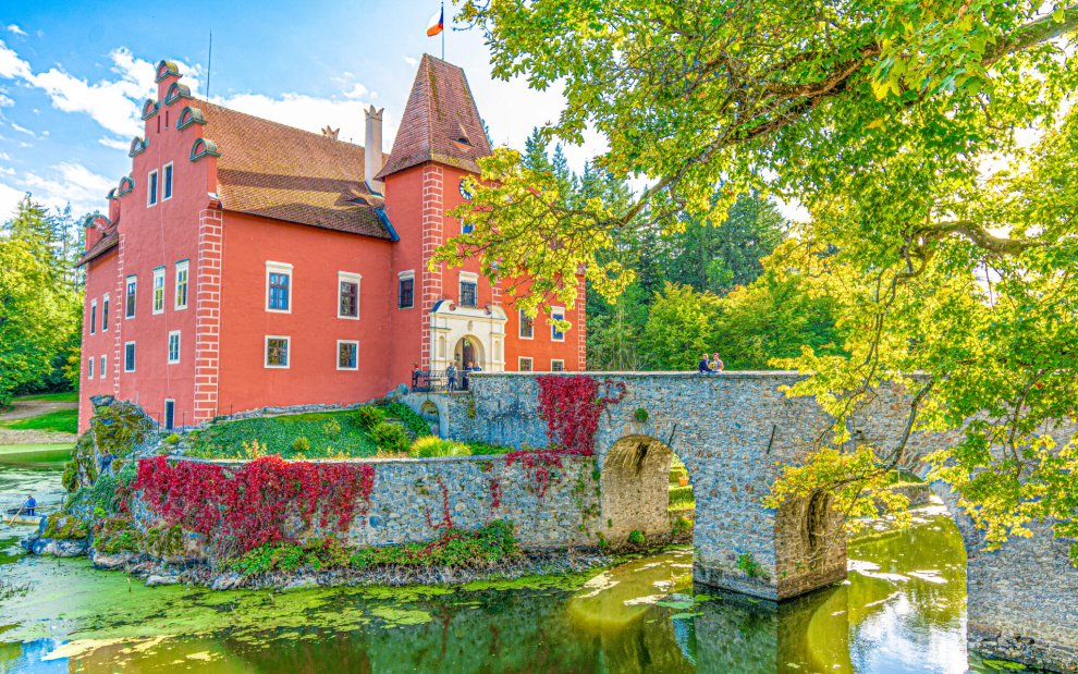 Červená Lhota to kolejny kultowy zamek, znany z wielu bajek i filmów. Pierwsza wzmianka o zamku pochodzi z 1465 roku, kiedy był to jedynie twierdza. Oznaczenie Červená Lhota pojawia się w 1602 roku i opiera się na kolorze tynku twierdzy. Pod koniec 17. wieku twierdzę przebudowano na zamek barokowy i zaczęto ją wykorzystywać jako letnią rezydencję. Na zamku można obejrzeć wnętrza pierwszego piętra, pomieszczenia na poddaszu i piwnice. Na szczycie parku zamkowego znajduje się renesansowa kaplica Trójcy Świętej, która zachwyca oryginalnie zachowanymi malowidłami i pomysłowo zaprojektowanym drewnianym stropem symbolizującym niebiańskie Jeruzalem. Zamek jest otoczony ze wszystkich stron stawem, po którym można popłynąć łódką jak Jerzy z bajki o Złotowłosej i zobaczyć go z innej perspektywy.