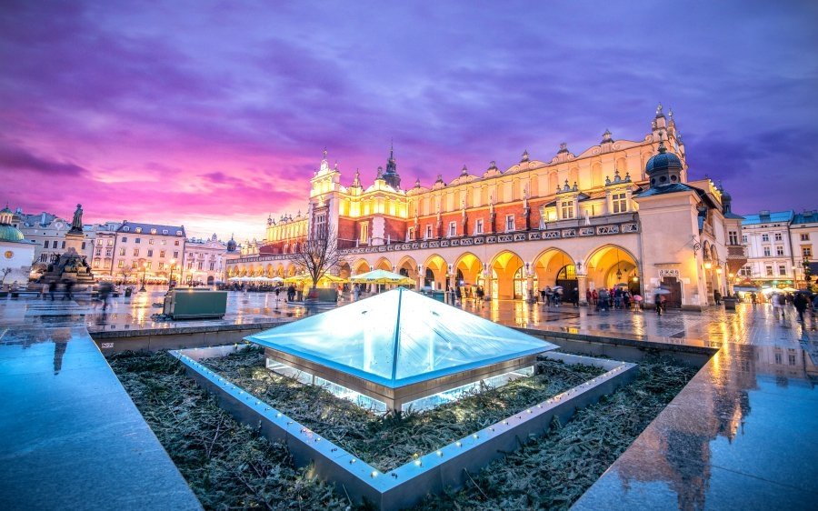 Rynek Główny: Jeden z największych placów w Europie, którego zdecydowanie nie można przegapić! Odbywają się tu słynne Jarmarki Bożonarodzeniowe, a także wiele krakowskich perełek.