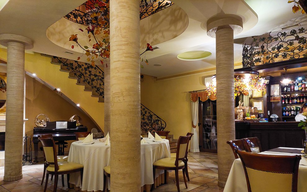 Posiłki w ramach obiadokolacji były serwowane w restauracji naprzeciwko hotelu. Przestrzeń restauracji była naprawdę ładna i było tam pianino, ale niestety nikt na nim nie grał. Piętro poniżej restauracji znajdował się bar z dwoma torami do kręgli i stołami bilardowymi. Śniadanie było w formie bufetu, w którym dominowały dania zimne: różne wędliny, sery, a także mnóstwo warzyw, owoców i sałatek. Gorący bufet obejmował jajecznicę i 2 rodzaje kiełbasek. Napoje obejmowały różne soki, wodę, herbatę i kawę (z ekspresu, po turecku lub rozpuszczalną). Wybór był dość standardowy, ale wystarczająco obfity i zawsze jedliśmy do syta i naładowani na cały dzień.