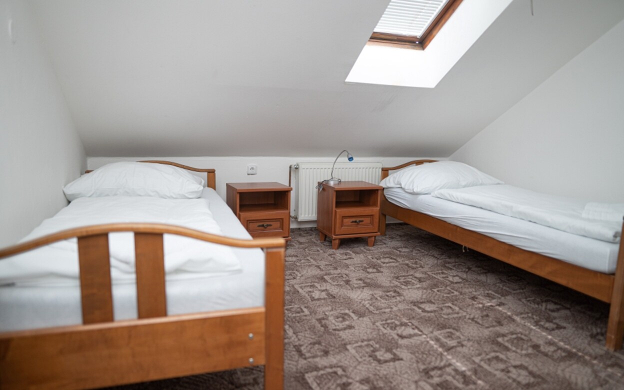 Pokój dwuosobowy Twin ma powierzchnię 20 m² i wyposażony jest w 2 łóżka pojedyncze. Pokój może pomieścić maksymalnie 2 osoby i nie można do niego wstawić dodatkowego łóżka.