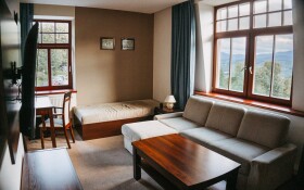 “Bardzo podobał nam się nasz pobyt. Hotel znajduje się w pięknej okolicy - widoki z okien na okolicę były niesamowite. Pokój był przestronny, czysty, nawet z kanapą i telewizorem, co było świetne do relaksu wieczorem. Każdego ranka delektowaliśmy się pysznym śniadaniem, zwłaszcza ciastami. Wokół hotelu jest wiele miejsc do zobaczenia i nawet deszczowa pogoda nie zniechęciła nas do zwiedzania. Szczególnie polecamy spacer po leczniczych źródłach Jesenika.” Przeczytaj pełną recenzję