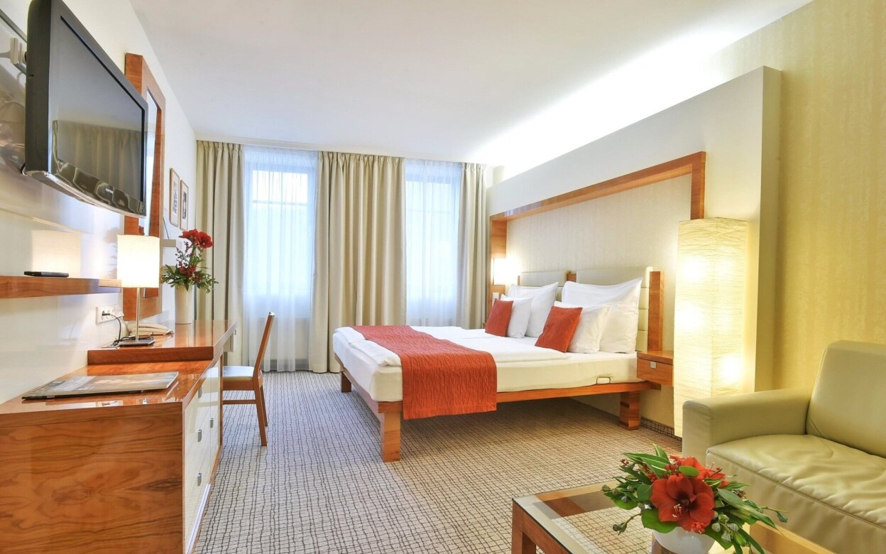Pokoje Vista Grand znajdują się na 6. piętrze głównego budynku A i oferują jeden z najlepszych widoków na Karlowe Wary. Na powierzchni 26 m² znajduje się łóżko typu king-size, biurko i rozkładana sofa, która może służyć jako dodatkowe łóżko.