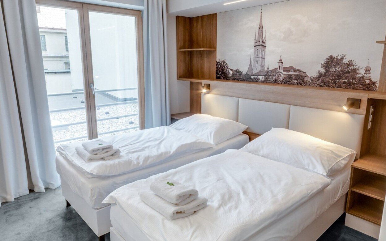 Stylowy Hotel Grand znajduje się w środkowoczeskim mieście Caslav, tuż przy placu Jana Žižka z Trocnova. W 2017 roku przeszedł kompletną rekonstrukcję, dzięki czemu zapewnia naprawdę wysoki komfort zakwaterowania. Piotra i Pawła (230 m) z wieżą widokową, barokowy Radice (150 m) z Halą Žižka, nowo odrestaurowaną synagogę (400 m) czy Muzeum Miejskie (450 m) - jedno z najstarszych tego typu w Czechach. Znajdziesz tu również Teatr Dusíka (220 m), kino Miloša Formana (400 m), basen (1,7 km), miejskie spa (900 m) i inne możliwości rozrywki.