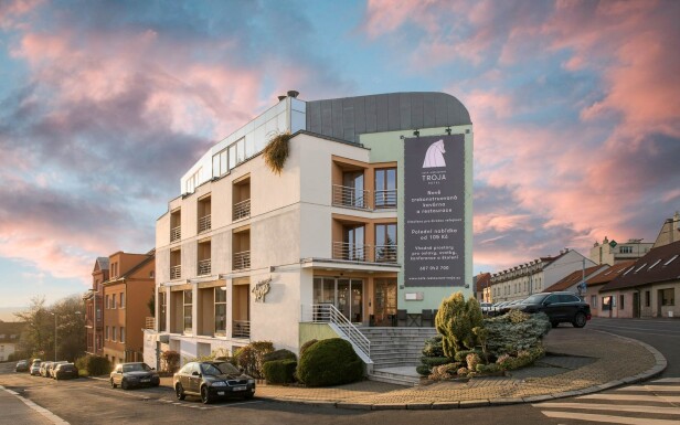Hotel Troja posiada restaurację z barem. W nowo wyremontowanej kawiarni - restauracji Troja z gustownym, nowoczesnym wnętrzem można odświeżyć się pysznym różnorodnym bufetem śniadaniowym, zanim pochłonie nas wir wielkiego miasta. Na lunch lub kolację można skosztować tradycyjnej, ale lekkiej kuchni czeskiej. Jeśli jesteś miłośnikiem kawy, koniecznie wypij filiżankę kawy Lamborghini wraz z jednym z domowych deserów na nowym tarasie.
