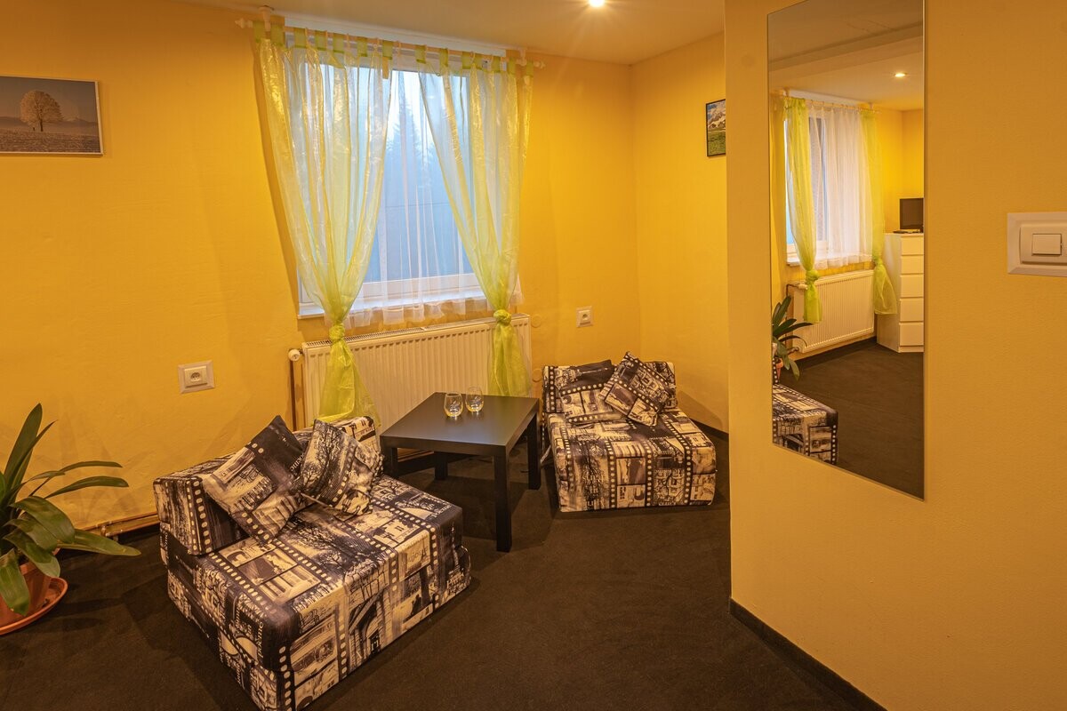 Pokoje rodzinne oferują więcej przestrzeni i większy komfort. Każdy ma własną łazienkę z prysznicem i toaletą, telewizor i meble wypoczynkowe. Wyposażenie obejmuje również podwójne łóżko, a pokoje pozwalają na dostawkę.