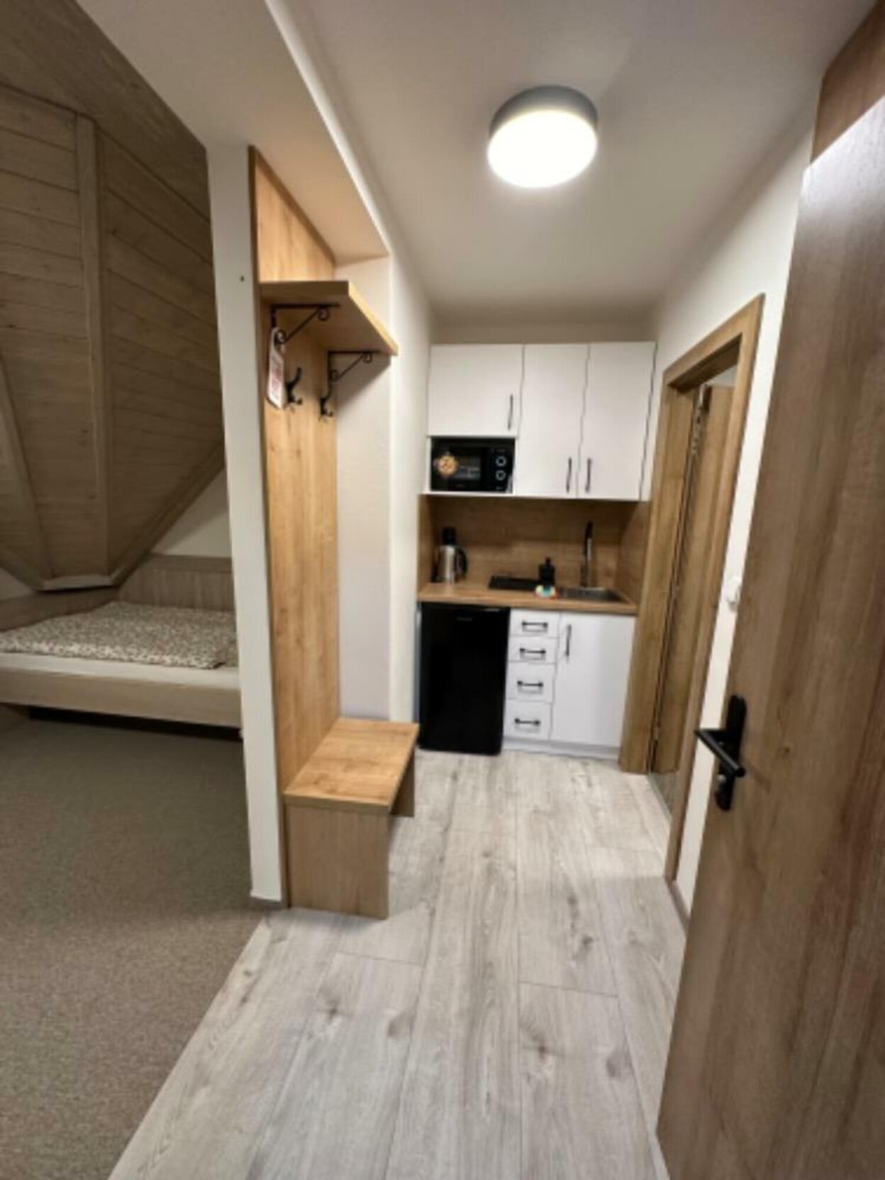Zatrzymasz się w jednym z 9 komfortowych, nowocześnie wyposażonych apartamentów. Każdy apartament posiada prywatną łazienkę z prysznicem, toaletę, telewizor i łącze WiFi, a także wyposażony aneks kuchenny (mikrofalówka, czajnik, mini lodówka, kuchenka indukcyjna).