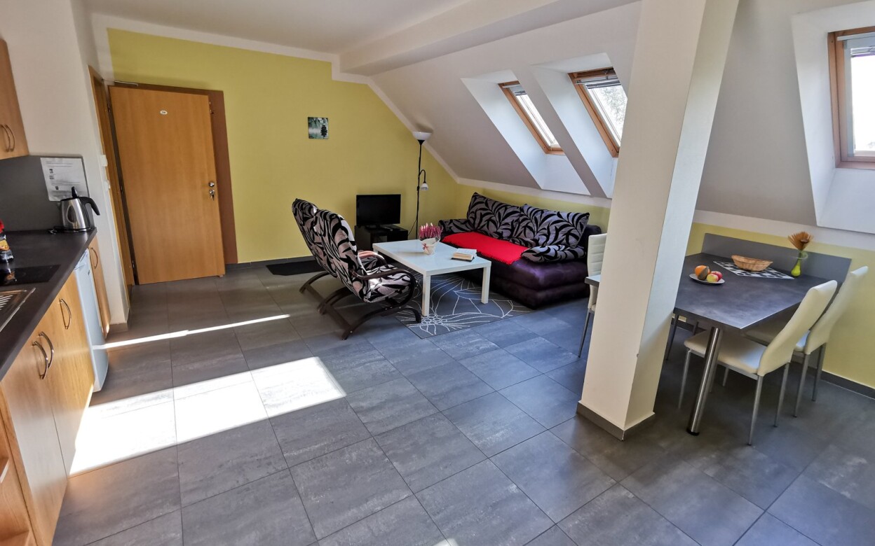 Apartamenty Mia są dwu- lub czteroosobowe, niektóre z nich oferują możliwość dostawki na rozkładanej sofie.