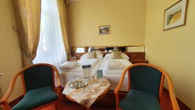 Pokoje dwuosobowe mają powierzchnię 18-26 m² i mogą mieć widok na dziedziniec lub ogród Dvořáka. Na wyposażeniu znajduje się łóżko małżeńskie lub 2 oddzielne łóżka, niewielka część wypoczynkowa oraz biurko.