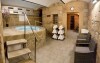 Nowe prywatne centrum odnowy biologicznej zachwyca oryginalnym otoczeniem z piaskowca. Wanna z hydromasażem i sauna fińska** są idealnym miejscem na relaks. Znajduje się tu również przyjemna strefa relaksu.