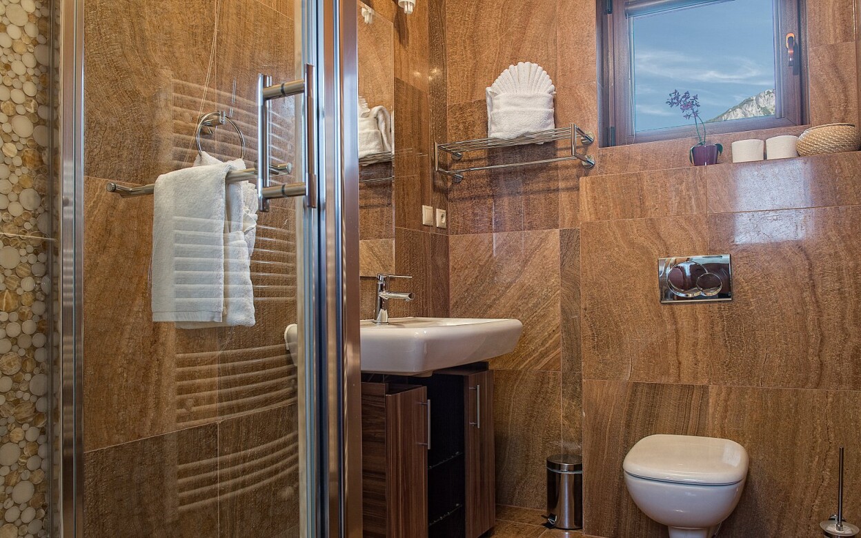 Apartament znajduje się na 1. piętrze i oferuje 56 m² powierzchni oraz prywatny balkon z pięknym widokiem na Tatry Bielskie. Składa się z 2 pokoi - oddzielnej sypialni z podwójnym łóżkiem i salonu z drugim podwójnym łóżkiem, sofą i fotelami, telewizorem oraz aneksem kuchennym z kuchenką mikrofalową, lodówką i czajnikiem. Oba pokoje mają dostęp do balkonu. W łazience znajduje się wanna narożna, idealna do relaksującej kąpieli.