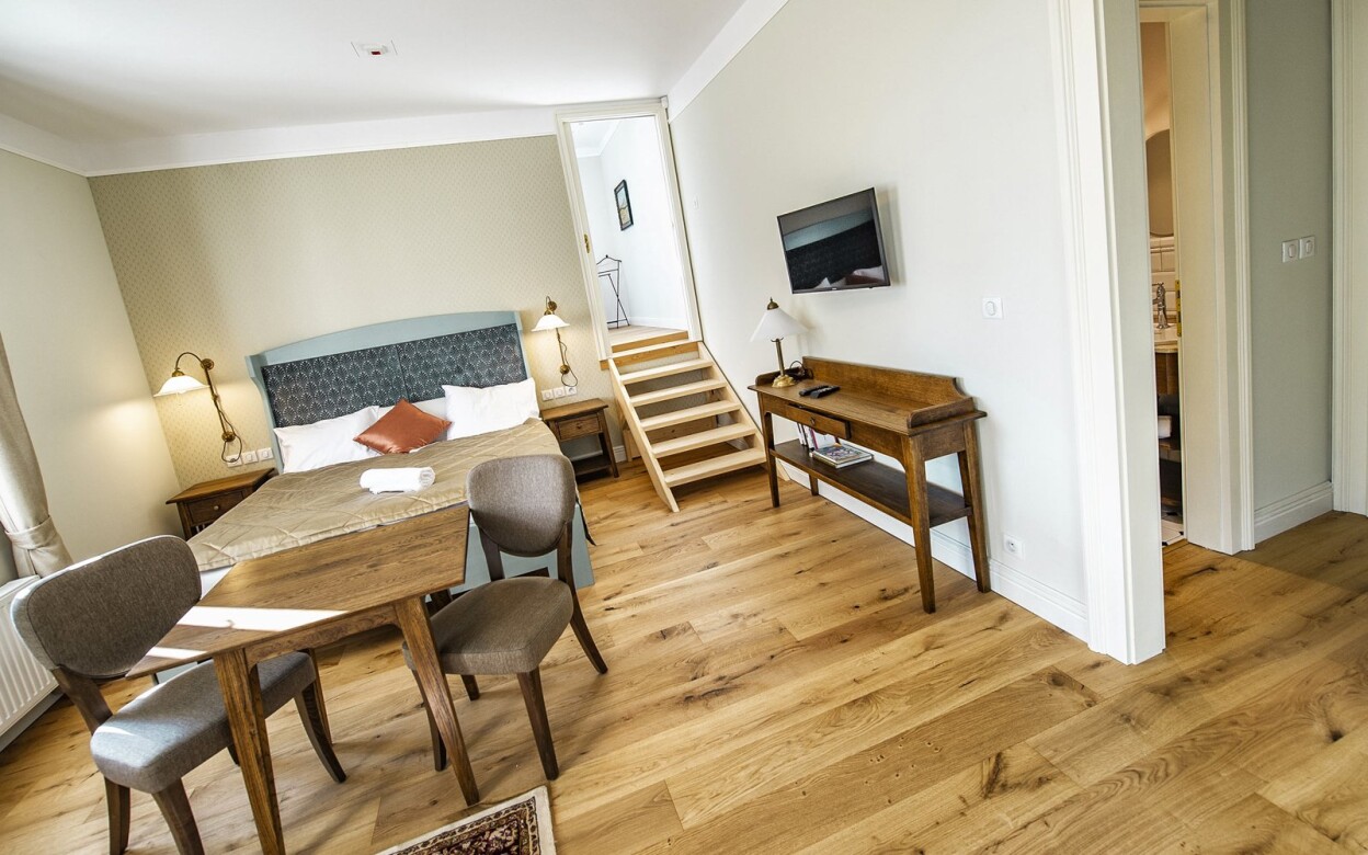Wygląd zewnętrzny i wnętrza willi można po prostu opisać jako piękne, to samo dotyczy pokoi. Meble i wyposażenie są w stylu historycznym, ale jednocześnie wszystko jest nowe, schludne i doskonale skoordynowane. Każdy pokój posiada prywatną łazienkę z toaletą, mały aneks kuchenny z czajnikiem i lodówką, telewizor i łącze WiFi.