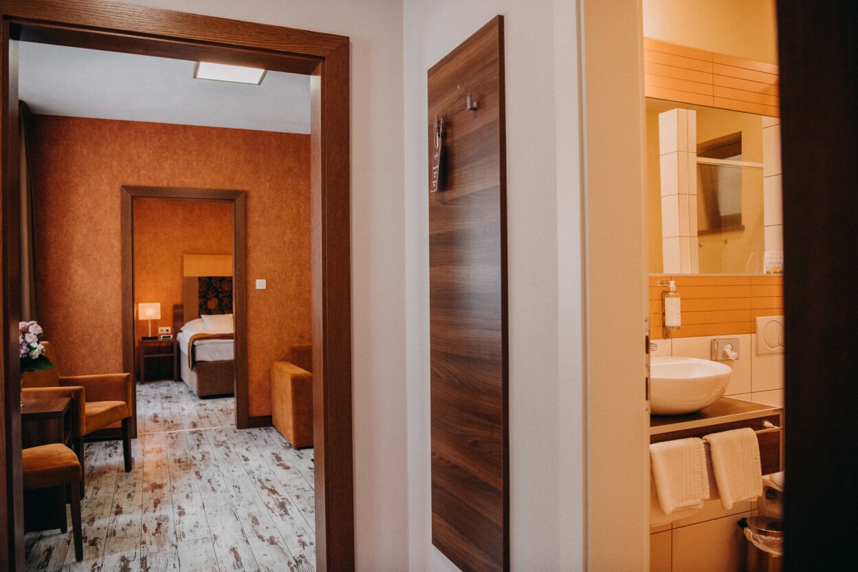 Zatrzymasz się w jednym z komfortowo urządzonych pokoi i apartamentów. Każdy z nich posiada łazienkę z prysznicem lub wanną i suszarką do włosów, klimatyzację, zestaw do prasowania, telewizor, łącze WiFi, zestaw do parzenia kawy i herbaty oraz minibar.