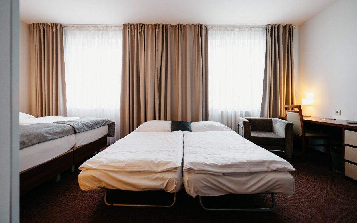 Pokój Classic oferuje 26 m² powierzchni z 2 łóżkami lub łóżkiem podwójnym, biurkiem, szafkami do przechowywania i częścią wypoczynkową z fotelami. Do niektórych pokoi można wstawić 1-2 dodatkowe łóżka.