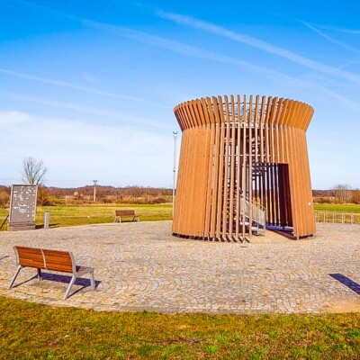 Wokół wieży widokowej można usiąść, a w pobliżu znajdują się punkty gastronomiczne.