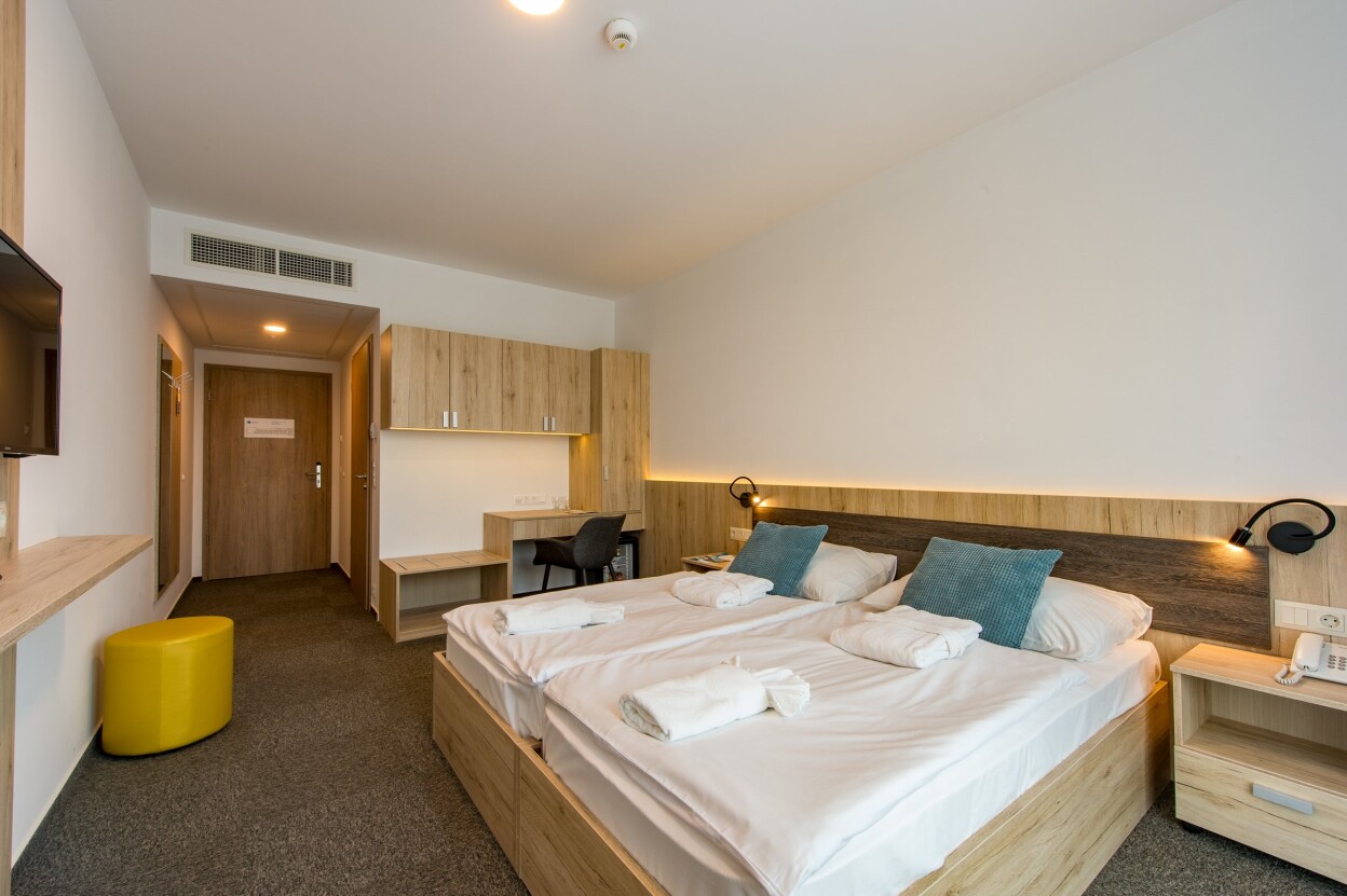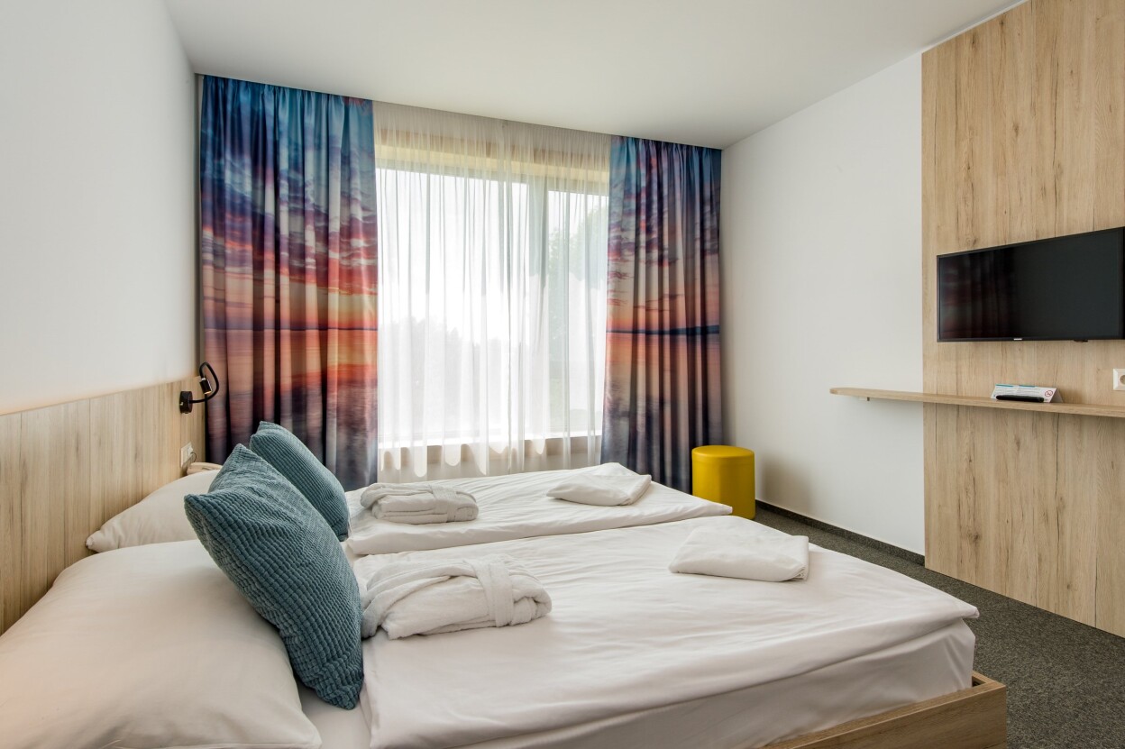 Dwa baseny oraz strefa wellness z kąpielą parową, jacuzzi, sauną na podczerwień i sauną fińską, które są bezpośrednio połączone z budynkiem hotelu, będą doskonałym miejscem na relaks.